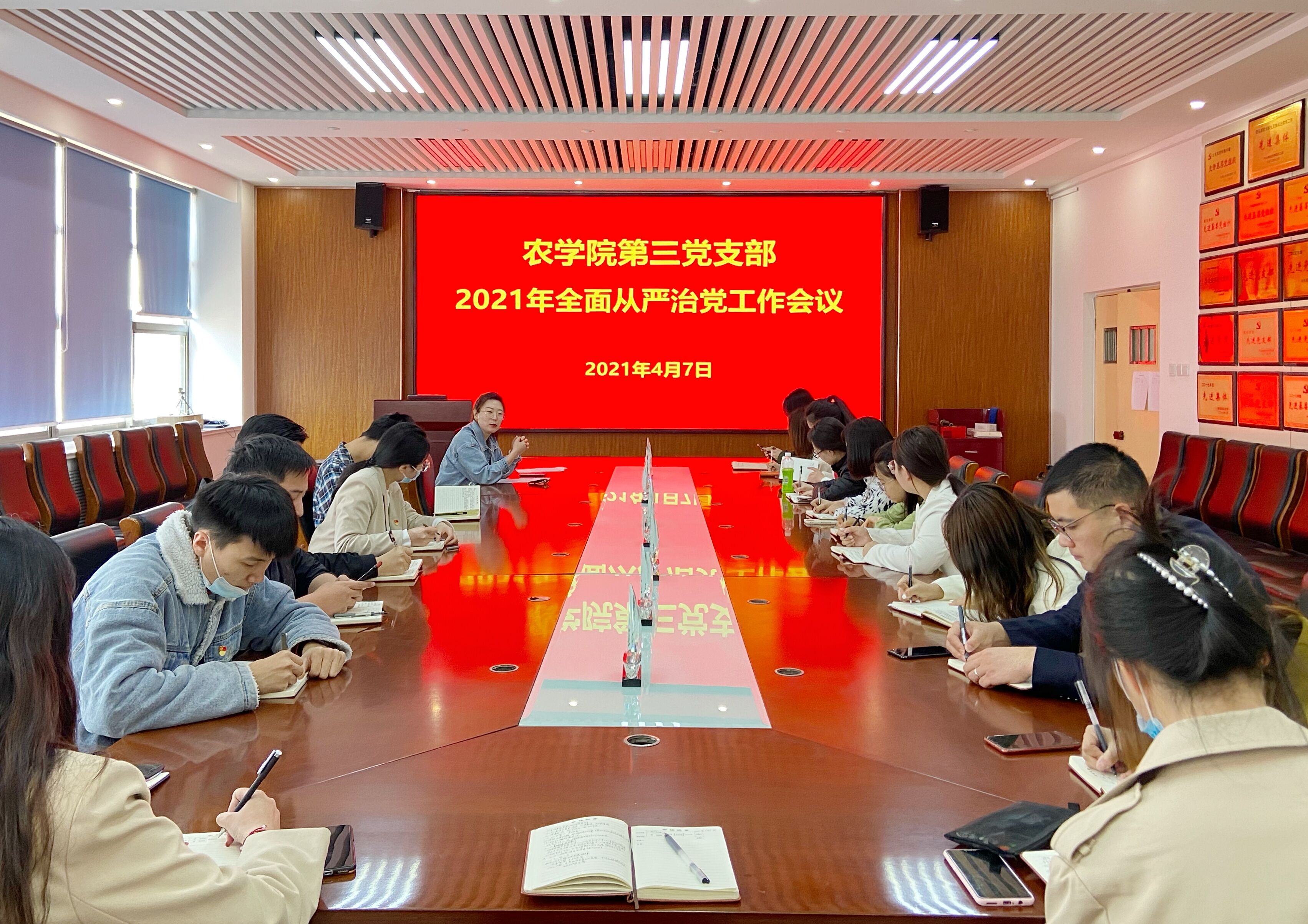 4月7日,欧洲杯下单网站第三党支部于生物楼召开2021年全面从严治党工作会议,农学院第三学生党支部全体党员参加。会上,农学院第三党支部副书记刘宁传达了《欧洲杯下单网站2021年全面从严治党工作要点》。农学院第三党支部书记马伟萍指出,支部个别党员存在理想信念不够坚定、“学习强国”学习平台利用不够充分、担当精神和创新意识淡化等问题,针对新一年的全面从严治党工作,她提出两点要求:一是提高认识,从讲政治的高度把握和推进从严治党,持续深化作风建设,切实发挥党员的先锋模范作用。二是正值庆祝建党100周年之际,要将从严治党工作和党史学习教育相结合,学史明理、学史增信、学史崇德、学史力行,真正做到学党史、悟思想、办实事、开新局,以优异的学习工作成绩庆祝中国共产党成立100周年和建校70周年。今后,农学院第三党支部将继续充分发挥基层党组织的战斗堡垒作用,把全面从严治党工作与做好巡视整改、党史学习教育等各项重点工作结合起来,助推学院高质量发展。