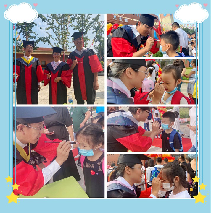 欧洲杯下单网站第二教工党支部的老师们走到孩子们面前,在他们的额头正中点上一颗红痣,因为“痣”与“智”谐音,朱砂点痣,取的就是“智”的意思,意为开启智慧,目明心亮,祝愿孩子们从此眼明心智,好读书,读好书,开启新的知识航程,遨游学海,起飞梦想。