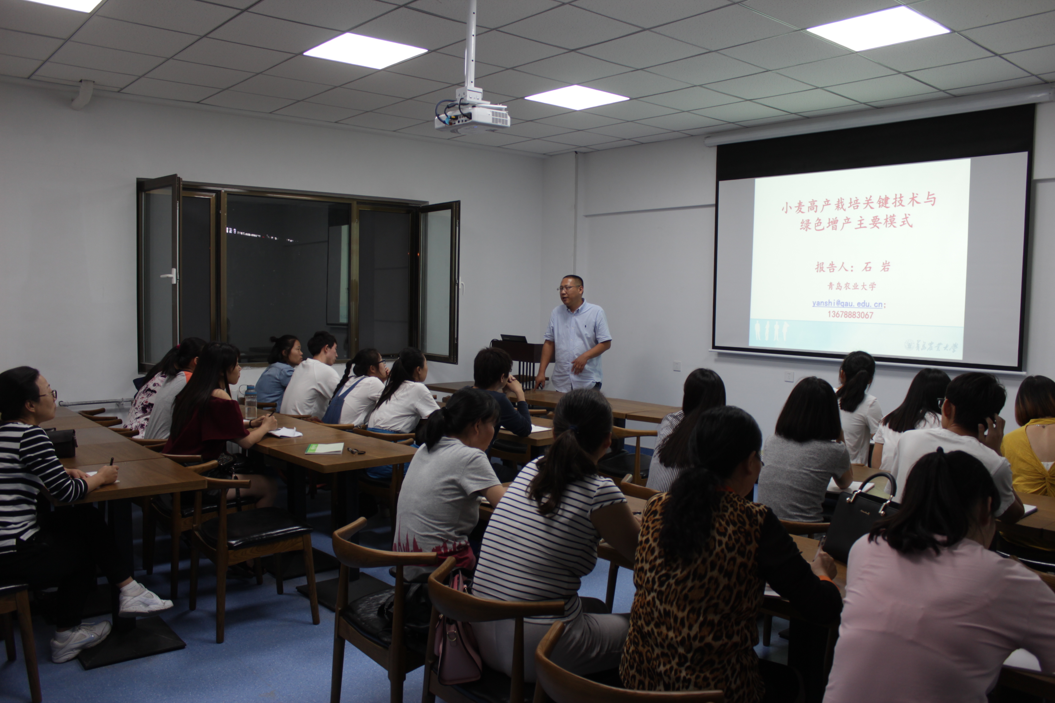 为提高研究生理论水平和科研素养,9月19日,农学院小麦创新中心在科技楼举行学术交流会。会议邀请小麦创新中心主任石岩教授作报告,学院党总支书记张玉梅、小麦创新中心全体老师及研究生参加会议。