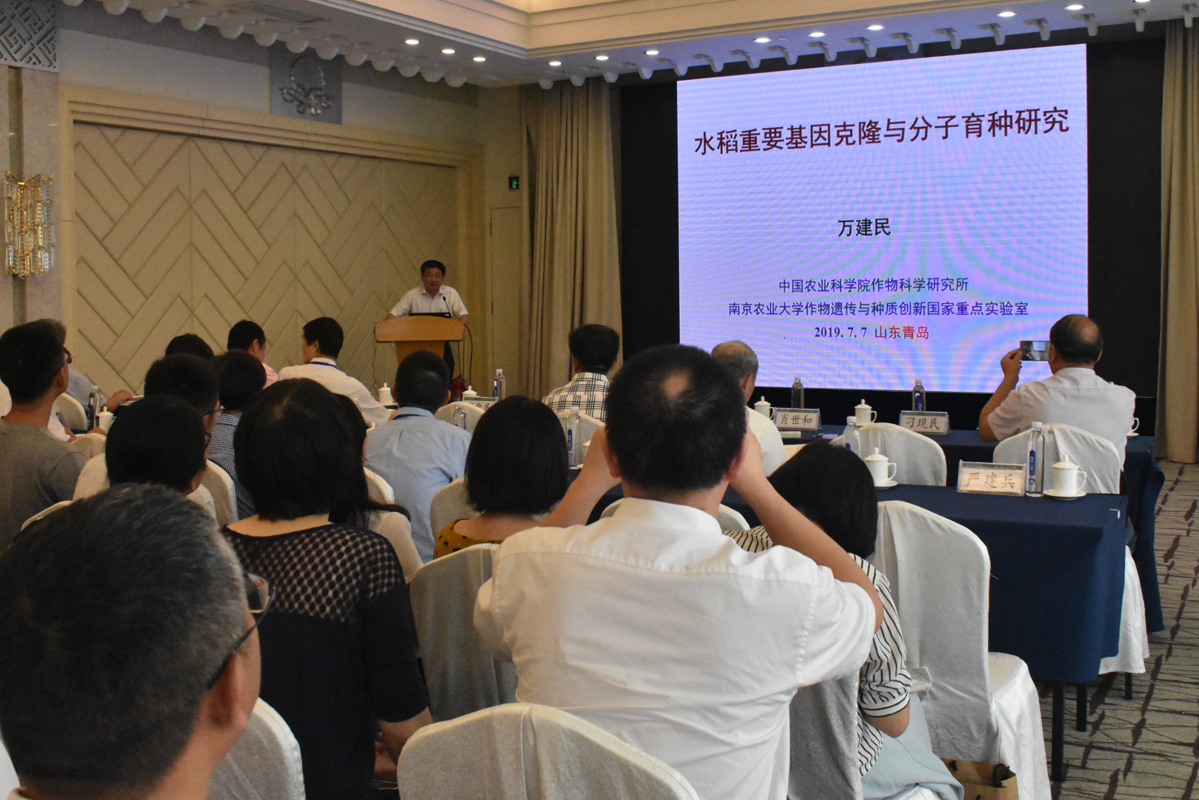 张爱民详细介绍了小麦全基因组研究,肖世和系统讲解了我国小麦产业技术现状并作出展望,孔令让则对长穗偃麦草基因组进行了解析并解读了重要基因的克隆与应用;马峙英就多抗优质高产棉花育种基础研究与应用做了精彩的报告,他细致的讲解了优异种质的筛选,育种技术的创新与应用以及多抗优质高产新品种的选育。徐云碧就作物大数据与人工智能育种进行了专题报告,就什么是大数据、大数据如何促进育种发展等问题进行解读,呼吁行业更加关注大数据在农业生物领域的发展与应用。刘学锋细致解读了大数据分析在生物科学方面的应用;对于基因组测序,Sachiko Isobe在报告中明确植物基因组测序的途径,严建兵则从植物单细胞入手,系统介绍植物单细胞测序的目的、进展、应用,闵家祥更为深入地讲解了选择性剪切在植物育种中的应用。巩志忠报告了ABA信号传递和植物抗旱相关内容,就研究植物抗旱背景、ABA抗旱机制等做了系统的阐述。赖锦盛讲述了玉米基因组学和分子育种内容,张洪霞则介绍了细胞壁蔗糖转化酶GIF1在提高玉米产量和品质中的功能研究。张新友、万建民、韩天富教授、李英慧、马代夫、金黎平、刁现民围绕花生、水稻、大豆、甘薯、马铃薯、谷子作物,报告了花生基因组与分子育种研究进展、水稻分子设计育种、大豆光温生态适应性及其生物学基础、大豆抗胞囊线虫优异基因资源发掘与创新利用、甘薯品种改良与生物技术、马铃薯遗传育种、谷子资源的群体结构分析和育种利用等研究进展,向与会人员展示最新研究成果。